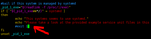 # vim install_server.sh (ta comment lại dòng 82 vì có exit 1 không tương thích với systemd - lỗi ko cần thiết)