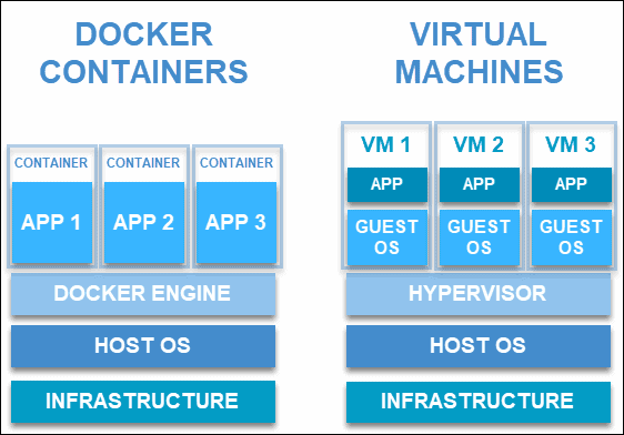 Không giống như máy ao (VM) nơi mà sự ảo hóa (virtualization) xảy ra ở tầng phần cứng (hardware level), container chỉ ảo hóa ở lớp ứng dụng (app level). Nó có thể dùng 1 máy, chia sẻ kernel và giả môi trường để chạy process độc lập. Điều này làm cho container cực kì nhẹ, không chiếm nhiều tài nguyên của máy.