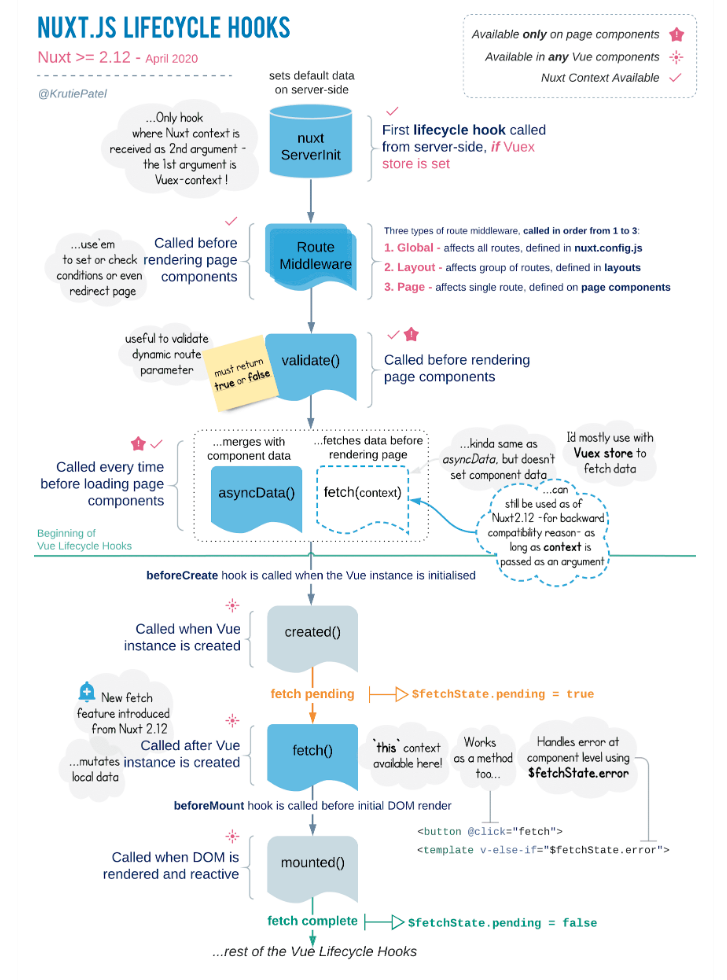 - AsyncData được gọi trước fetch và được gọi một lần ở phía server-side và mỗi lần trước khi router được thay đổi ở phía client-side.