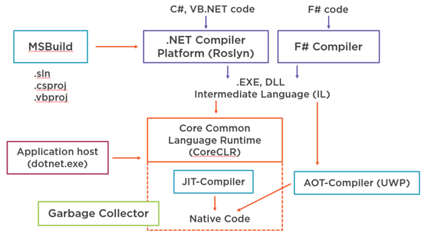Dưới đây là minh họa toolchaine của .NET Core.
