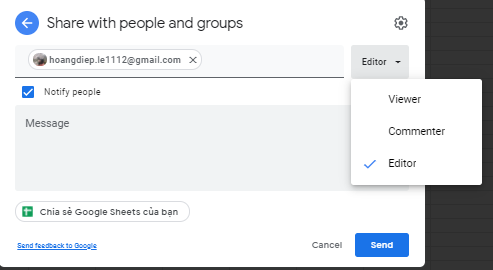Step 2: input những địa chỉ mail mà bạn muốn share.