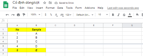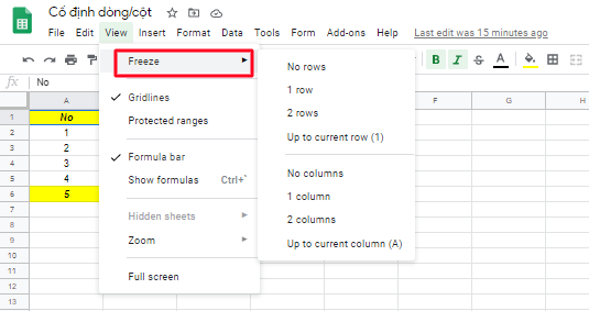 19. Cố định/đóng băng dòng/cột trong Google sheets