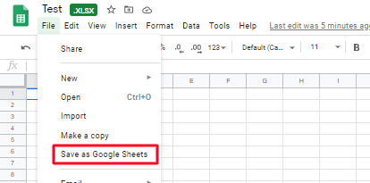 Step 3:** trên thanh công cụ chọn File > Save as Google Sheets