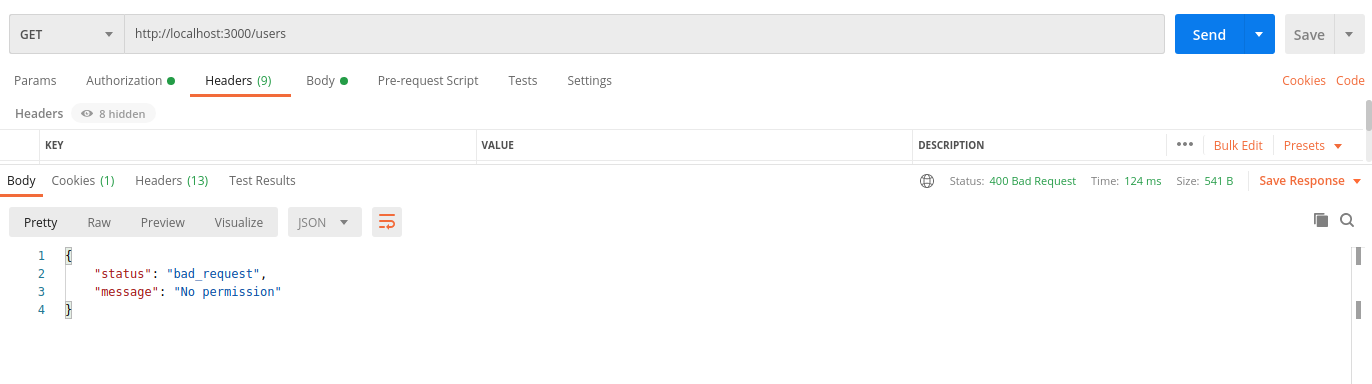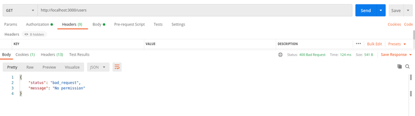 render json: {status: :bad_request, message: "No permission"}, status: :bad_request