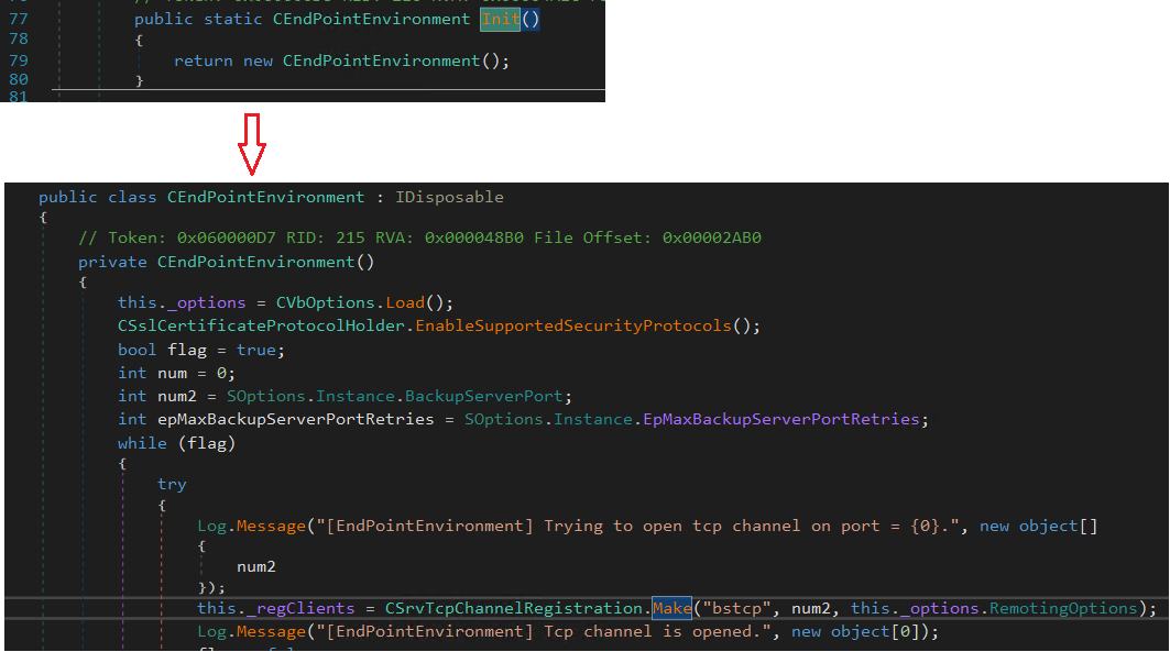 Sau khi tìm kiếm một hổi thì mình tìm thấy điểm khả nghi sau trong Veeam.Common.Remoting.dll