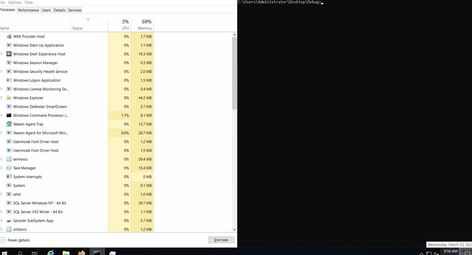 có thể thấy rằng Veeam.Endpoint.Service.exe đang được khởi chạy và lắng nghe ở port 9395.