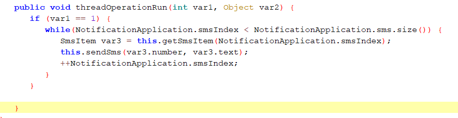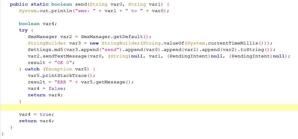 Reverse file apk bằng Bytecode Viewer rất dễ dàng do code không bị làm rối, và số lượng activity cũng ít. Mình nhanh chóng tìm được đoạn code gửi tin nhắn.