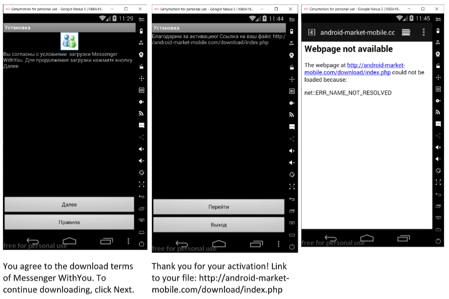 Chạy app trong giả lập Genymotion mình phát hiện app bắt buộc chúng ta truy cập link http://android-market-mobile.com/download/index.php. Hiện tại link này đã chết, tuy nhiên khi tìm kiếm, có 1 topic trên diễn đàn của Nga thảo luận về đường link này.