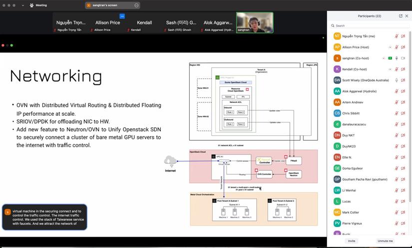 Trong đó đại diện Việt Nam FPT Smart Cloud là thành viên hoạt động tích cực contribute nội dung cho chủ đề này dựa trên kinh nghiệm thực tế khi triển khai thành công 2 cụm AI Factory tại Việt Nam và Nhật bản lọt vào Top 500 hạ tầng AI tiên tiến nhất thế giới, cũng như việc tôi có vinh dự tham gia trinh bày trong broadcast Show&Tell đầu tiên của nhóm này trước hàng trăm chuyên gia và bạn bè quốc tế đến từ các công ty như Redhat, Rackspace, China Mobile,...