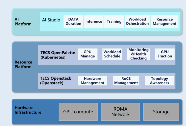 - ZTE: AI Infratructure, dựa trên Openstack, RDMA Switch, High Performance Storage.