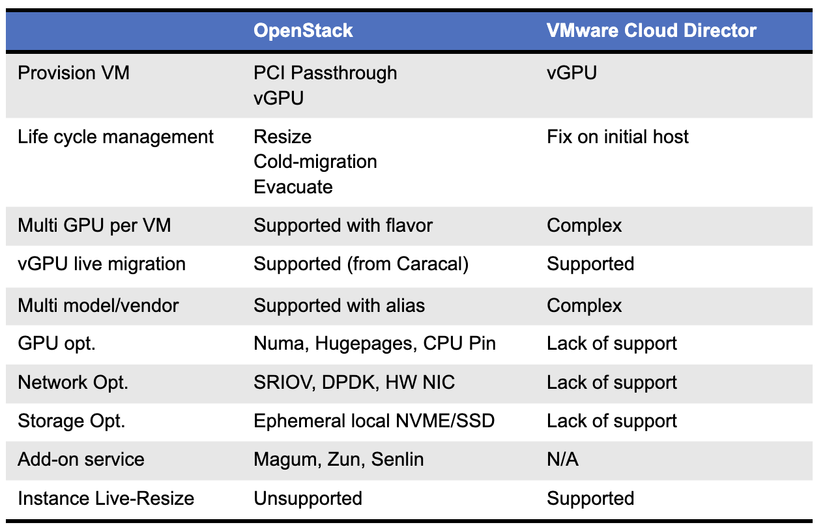 Các yêu cầu hạ tầng dành cho workload AI đang tăng lên nhanh chóng về cả độ phức tạp lẫn quy mô. Lợi thế của OpenStack trong việc đáp ứng nhu cầu này không chỉ đến từ bộ mã nguồn trưởng thành, mô-đun hóa, mà còn từ mô hình phát triển mở, dựa trên cộng đồng. Khác với các nền tảng độc quyền, OpenStack được xây dựng bởi chính cộng đồng những người triển khai và vận hành nó trong môi trường sản xuất. Điều này cho phép OpenStack cải tiến nhanh chóng và tích hợp các năng lực mới nổi như lập lịch GPU multi-tenant, schedule NUMA-aware - tất cả mà không phải phụ thuộc vào lộ trình bị kiểm soát bởi nhà cung cấp.