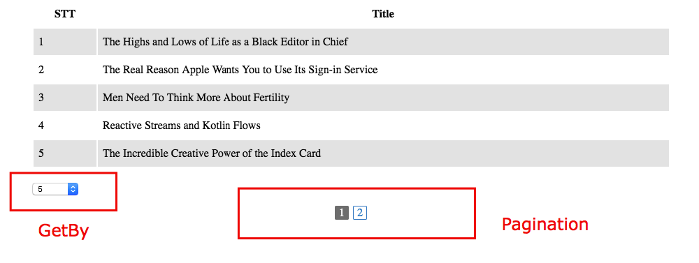 Ngoài ra thì còn vài hàm lặp lấy dữ liệu, thay đổi state trang hiện tại và số tin mỗi trang, có lẽ ko cần nói thêm. Các bạn cứ nhìn code và nếu ko rõ chỗ nào thì console.log() từng biến từng state ra sẽ hiểu hơn và đỡ buồn ngủ hơn đọc chữ của mình