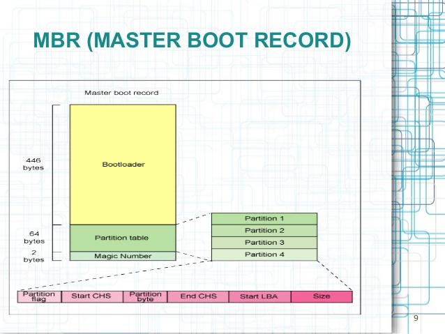 Được giới thiệu vào năm 1983. MBR chứa thông tin về cách phân vùng logical và các hệ thống tệp tin được sắp xếp trên đĩa và chứa Bootloader (bộ tải khởi động) được cài đặt trên hệ điều hành. MBR hỗ trợ tối đa bốn phân vùng chính nếu muốn nhiều phân vùng hơn bạn phải thực hiện chuyển đổi 1 trong những phân vùng chính thành "extended partition" (phân vùng mở rộng) và tạo phân vùng Logical bên trong phân vùng đó, mbr sử dụng 32 bit để lưu trữ các địa chỉ khối và đối với các ổ đĩa cứng có các sector 512 byte mbr chỉ xử lý tối đa 2TB. Trên ổ đĩa MBR, dữ liệu phân vùng và dữ liệu khởi động được lưu trữ ở một vị trí. Nếu dữ liệu này bị ghi đè hoặc bị hỏng thì coi như bạn gặp rắc rối rồi đó.