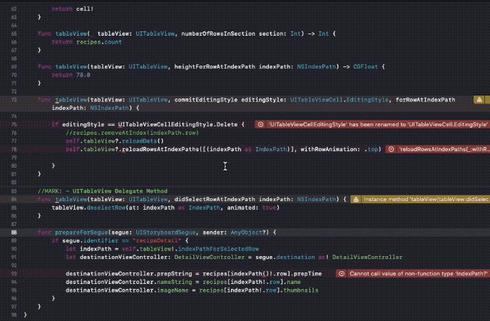 Phần này khá hữu dụng vì có những lỗi liên quan đến syntax trong Swift, hoặc những thay đổi trong file mà chưa kịp update.