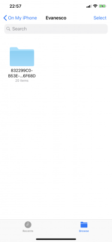 Xong, build và chạy app. Chọn nút chụp ảnh và sau khi xong, chuyển sang app Files. Bên trong thư mục Evanesco, bạn sẽ thấy folder với tên là dạng UUID với 20 ảnh trong đó.