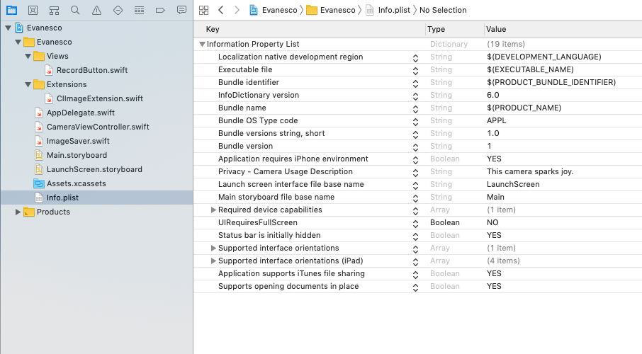 Mở CameraViewController.swift. Trên cùng của class, define những thuộc tính sau: