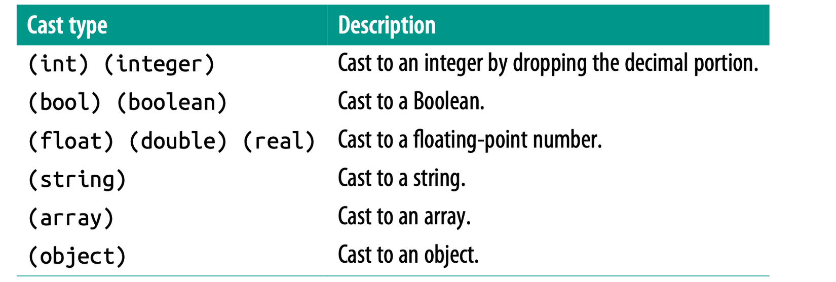 Ta gọi đây là explicit casting. Chú ý rằng, để đảm bảo rằng, giá trị của toàn bộ biểu thực được ép kiểu thành integer, ta cần đặt biểu thức trong dấu ngoặc đơn. Nếu không, thì chỉ có biến $a được ép kiểu thành integer.