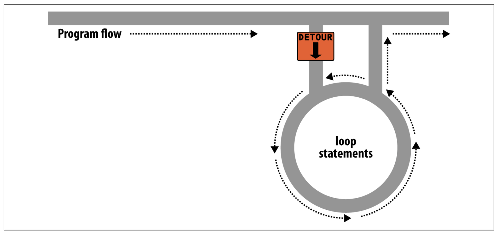Trong trường hợp của lệnh if, bạn hãy tưởng tượng rằng, bạn gặp phải một biển báo hiệu đường vòng, và bạn phải đi theo biển báo này nếu điều kiện nào đó là Đúng. Trong trường hợp này, bạn cần lái xe đi theo đường vòng này cho tới khi đi đến đường chính, rồi tiếp tục đi theo hướng bạn đầu của bạn. Ngược lại, nếu điều kiện này là Không Đúng, bạn sẽ bỏ qua biển báo đường vòng này, và cứ tiếp tục chạy theo hướng ban đầu bạn đã định. (Tham khảo hình dưới đây)