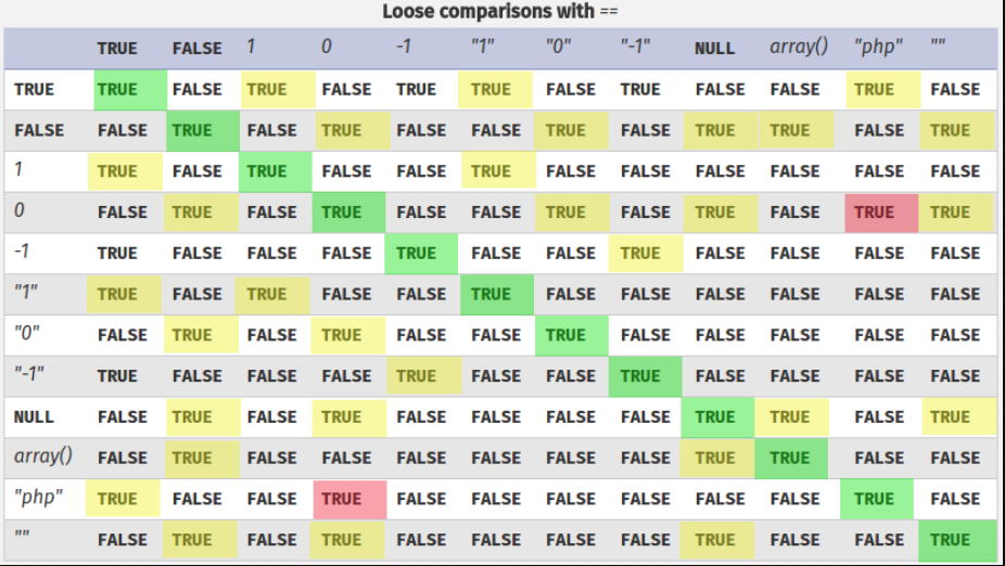 | PHP Comparisons: Loose | Value |