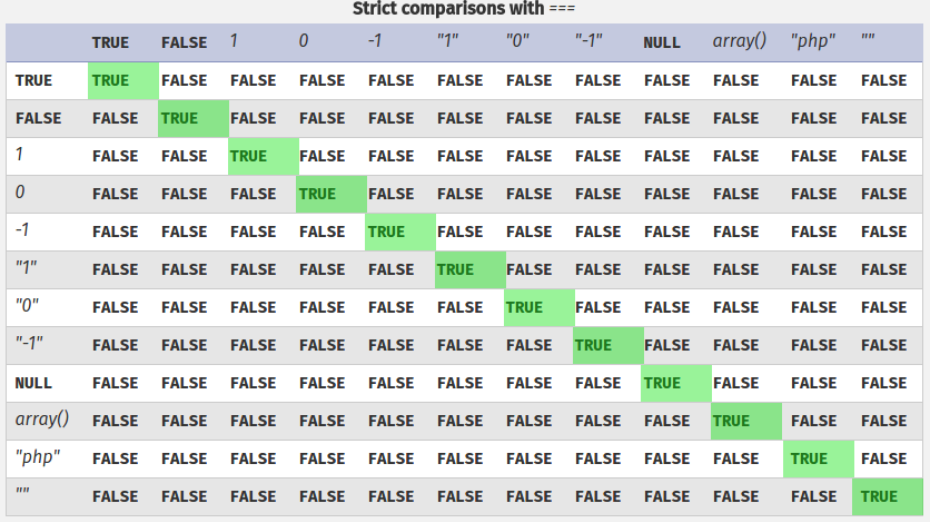 BOOLEAN (TRUE/FALSE), hai kiểu so sánh này lại rất khác nhau.- Toán tử so sánh === chỉ trả về TRUE khi hai biến so sánh giống nhau về