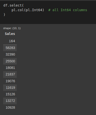 pl.col(pl.Int64) # all Int64 columns