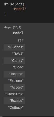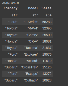 pl.col(['Model','Sales'])