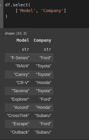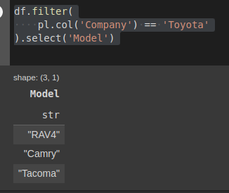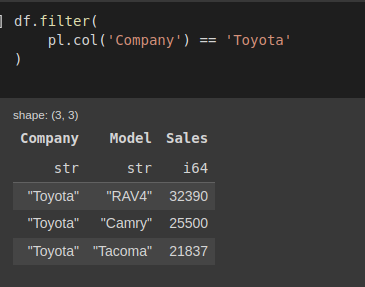 pl.col('Company') == 'Toyota'