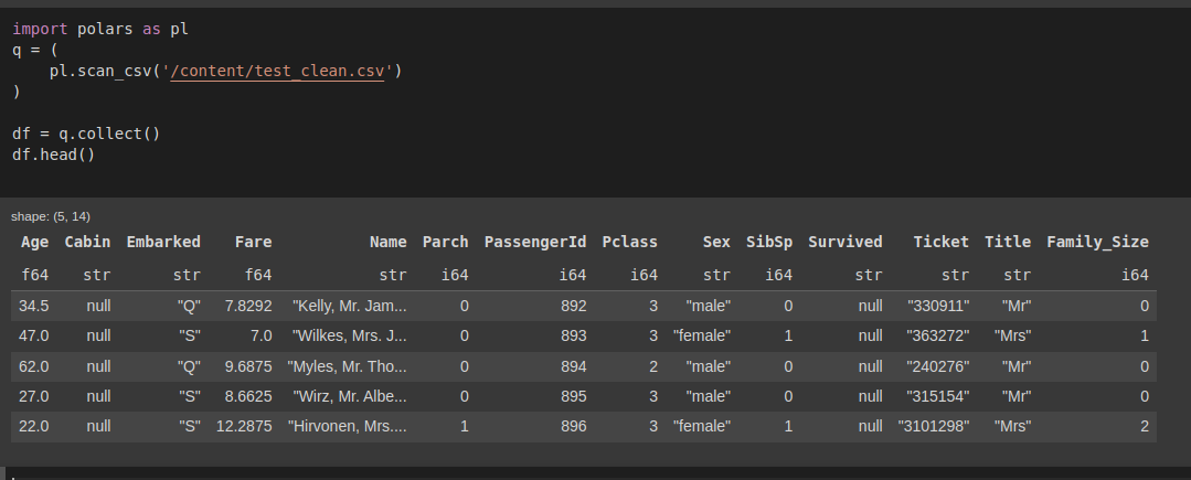 pl.scan_csv('/content/test_clean.csv').drop_nulls(subset=['Age','Embarked'])