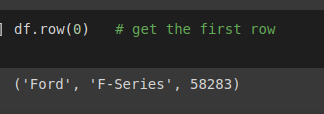 df.row(0) # get the first row