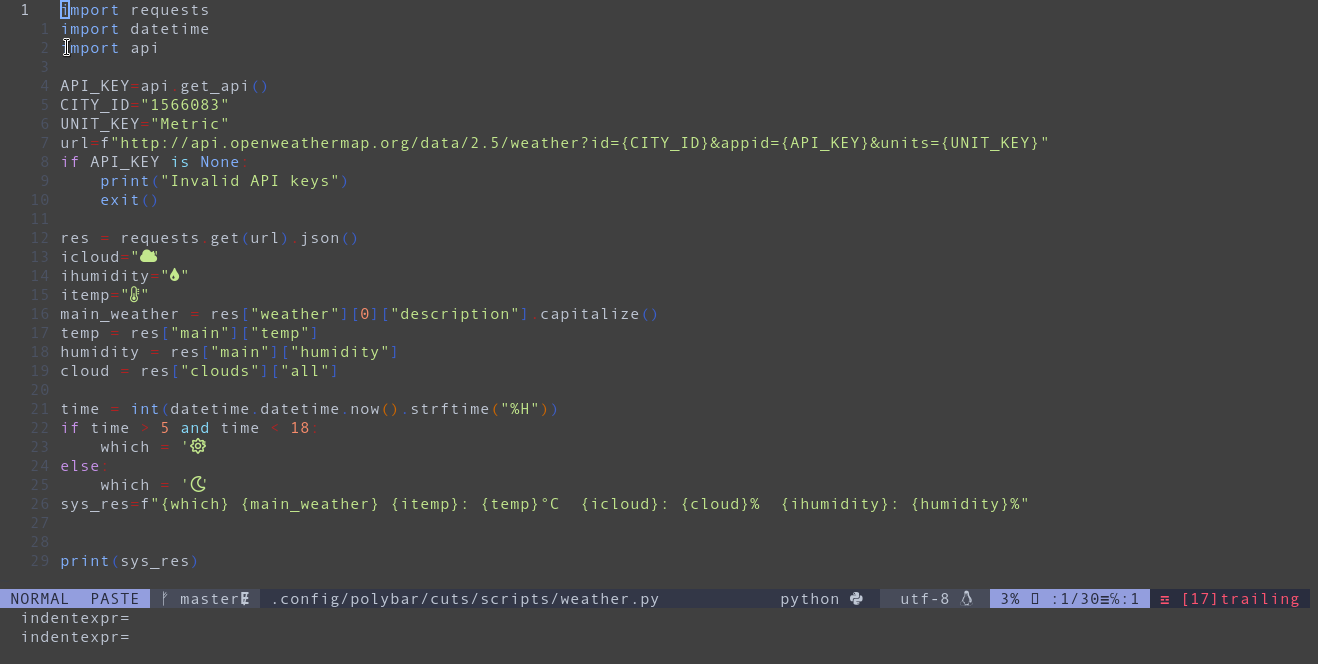 Do mình cũng là người dùng Polybar và mình rất tò mò nên cũng đã viết ra được một module dự báo thời tiết như thế này.