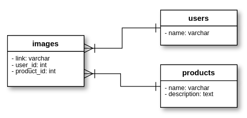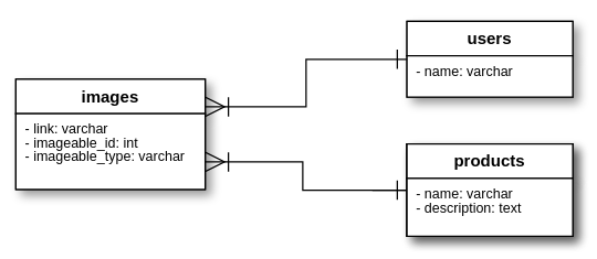 Ví dụ, một User và một bài Product đều có thể có nhiều Images.
