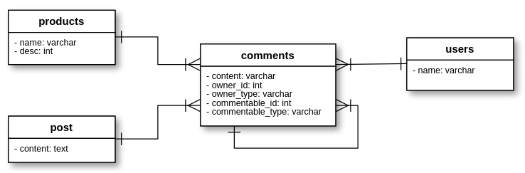 owner ở bài này là User, commentable có thể là Post, Product.. và do có thể reply comment, nên Comment cũng có thể đóng vai trò là 1 commentable
