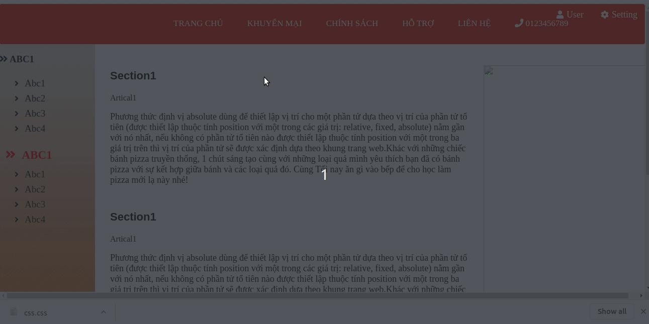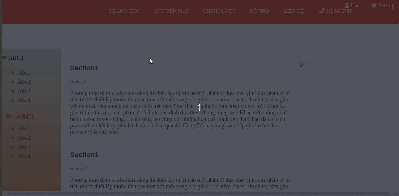 Tương tự như ví dụ trên mình cũng thêm position: absolute và xét cách trên 0px, phải