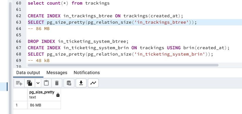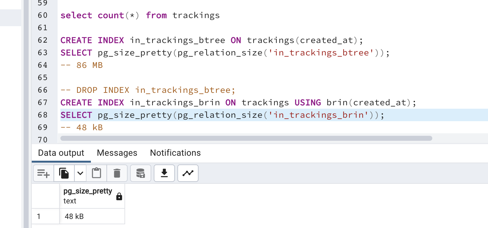 CREATE INDEX in_trackings_brin ON trackings USING brin(created_at);