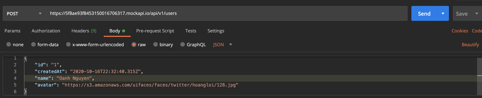 Hai request này là api Get list user và api đăng ký user (chúng ta đã sử dụng nó trước). Hãy nhớ rằng API của user là một request Post nên nó cũng chứa các request body.