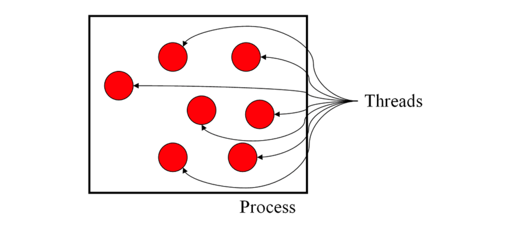 Một process có thể chứa nhiều thread bên trong nó. Khi chúng ta chạy ứng dụng, hệ điều hành tạo ra một process và bắt đầu chạy các thread chính của process đó.