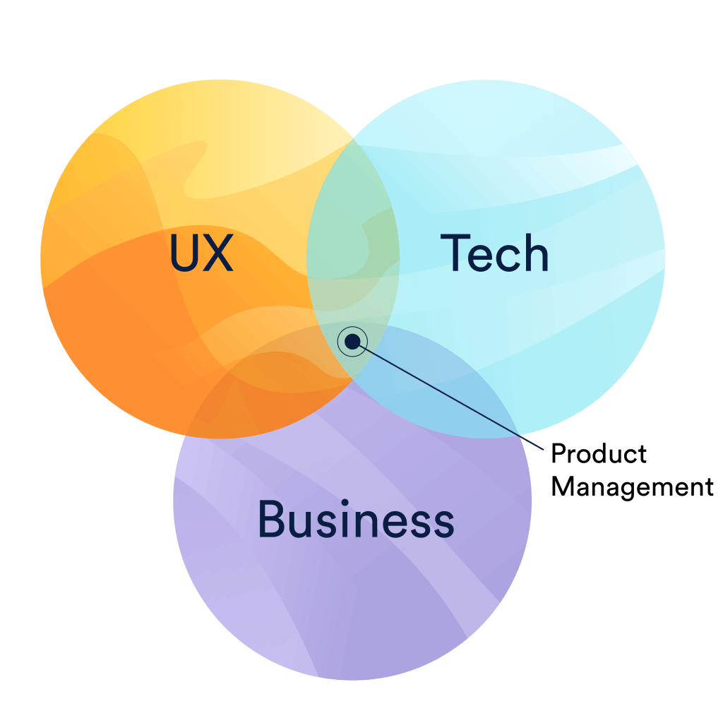 Bây giờ nhìn lại cái vòng tròn UX – Technology – Business ở hình phía trên, Product Management chính là việc bạn ứng dụng các mảng kiến thức khác nhau quan đến UX, Technology, Business…, kết hợp với đồng đội ( Designer, Developer, Marketer…) để giải quyết 3 ý mình mới kể ở trên.