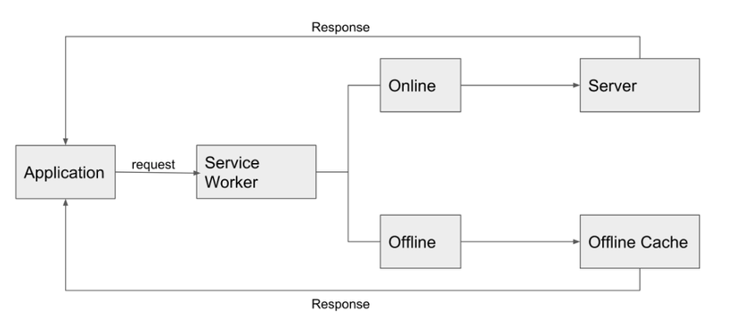 Từ đó cho phép PWA thực hiện được các tính năng chạy nền giống như Native App ví dụ như push notification hay sync dữ liệu mới, download file, sử dụng định vị thời gian thực,... Nghĩa là nó sẽ là đứa đứng ra giúp cho PWA có thể chạy offline, khi có mạng PWA sẽ tải dữ liệu từ server, còn khi không có mạng, nó sẽ lấy dữ liệu đã lưu trong cache đưa cho PWA,
