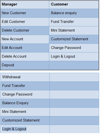 Case study trong bài viết này là ứng dụng guru99.com : Hệ thống gồm có 2 role Manager Customer và có những features/module dưới đây:
