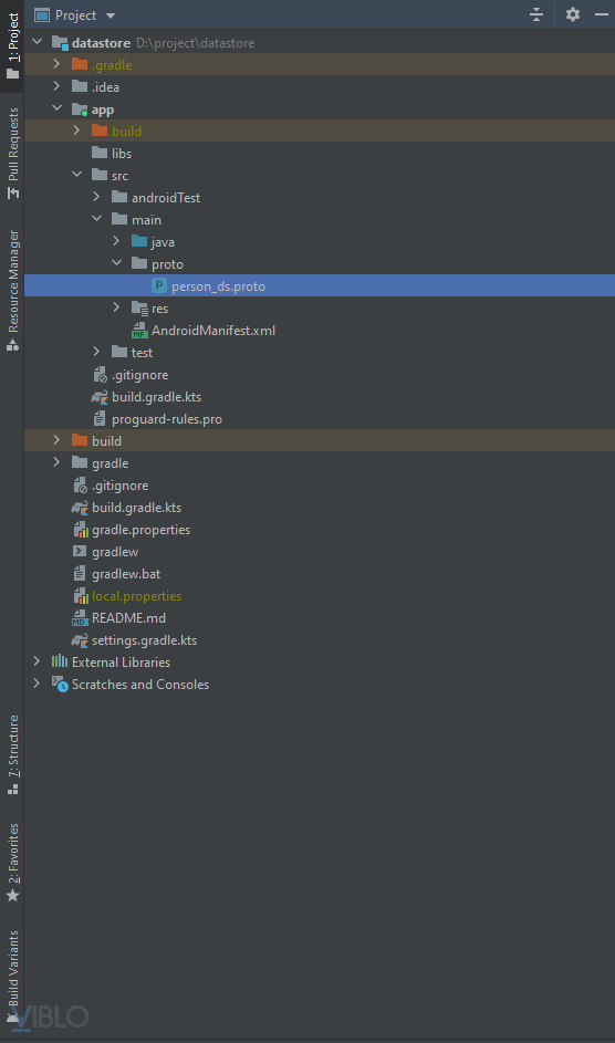 Việc đầu tiên bạn sẽ phải tạo 1 file .proto. Tạo file .proto giúp bạn xác định được các object để giúp DataStore có thể lưu trữ các object mà bạn muốn thay vì xác định chúng qua file kotlin.