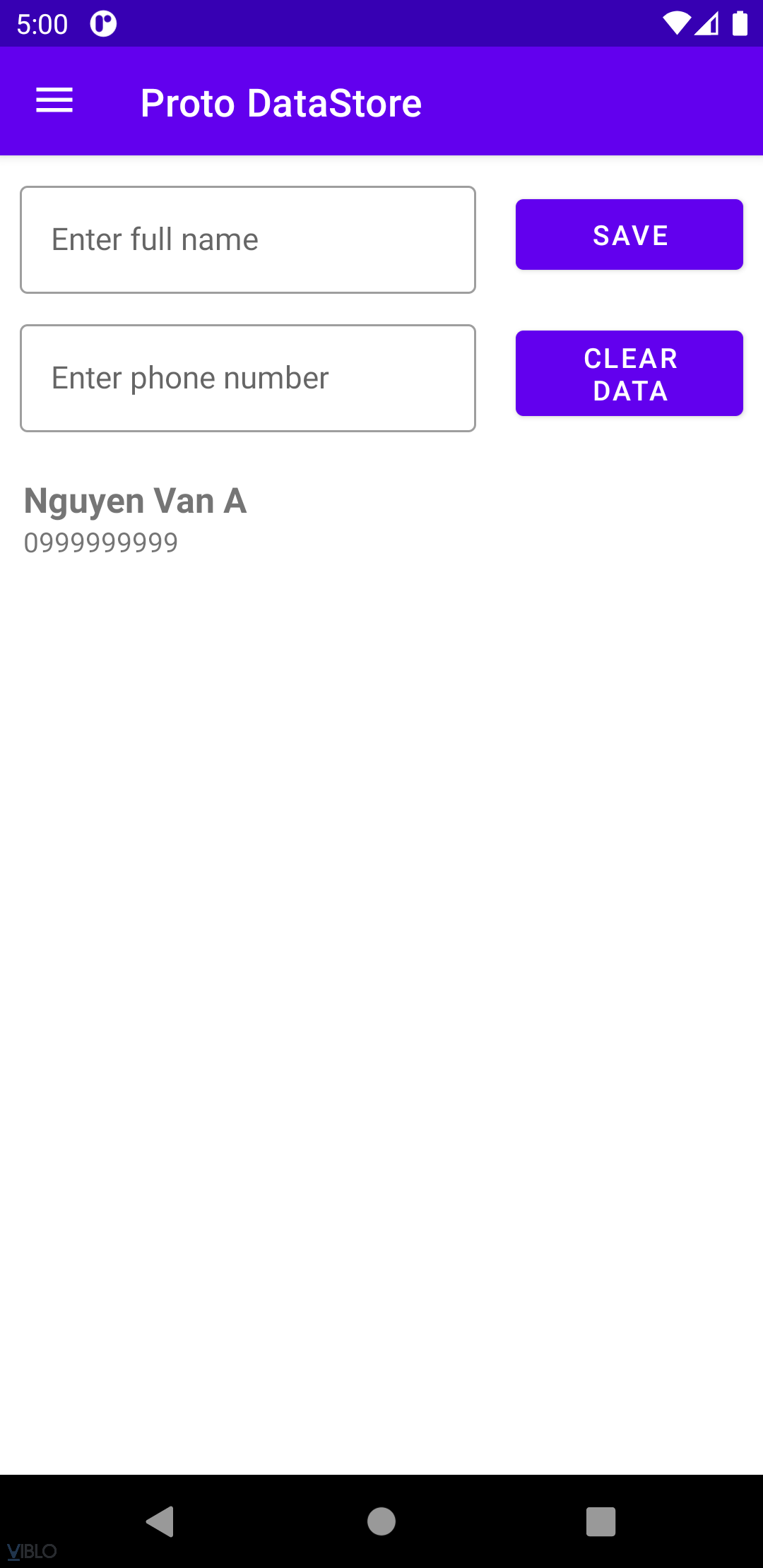 - Khi người dùng nhập tên, số điện thoại và bấm nút lưu ⇒ thông tin sẽ được lưu vào Proto DataStore.