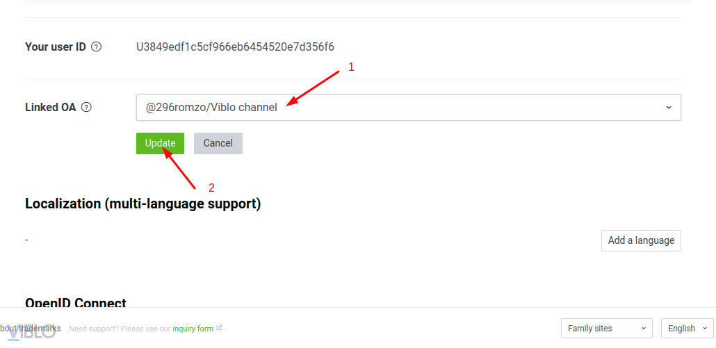 - Tại mục Linked OA, bấm edit và chọn Channel Message API đã tạo nhằm mục đích hiển thị button add friend Channel Message API khi end-user allow Line login