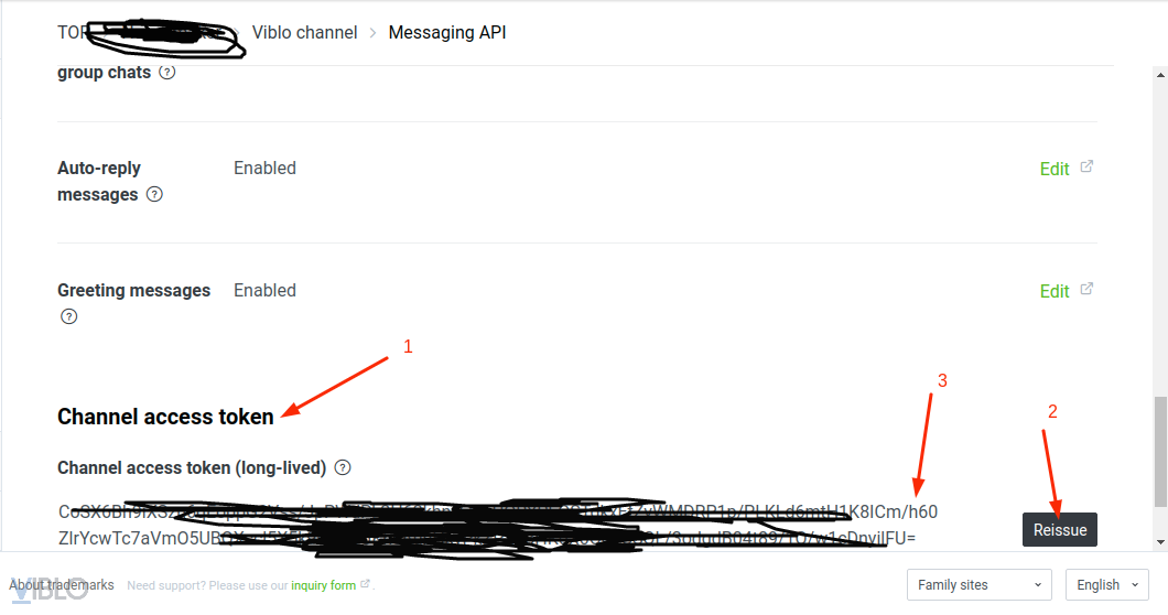 - Mục Channel secret, copy giá trị lưu vào biến CHANNEL_SECRET (Click vào button issue để generate nếu chưa có)