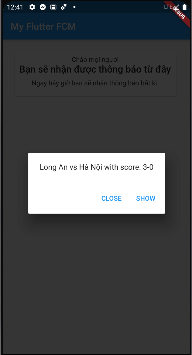 Khi nhận được dữ liệu sẽ hiển thị lên dialog.