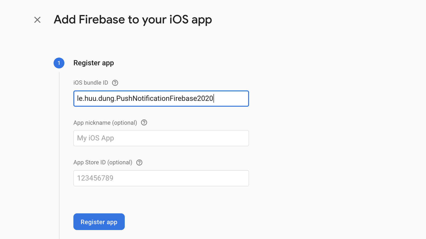 Trên Firebase Console bạn sẽ đăng ký bundle id ở Xcode: