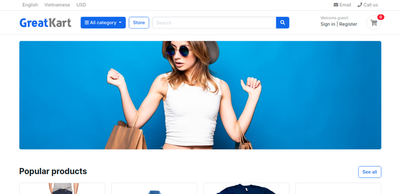 Tiếp theo, ta tùy chỉnh file store/views.py để hiển thị trang store. Ngoài ra, ta cũng thêm các file template cho app store. Tất cả mình để ở link github bên trên. Ta sẽ hiển thị các trang như sau: