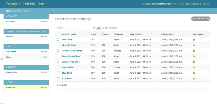 list_display = ('product_name', 'price', 'stock', 'category', 'created_date', 'modified_date', 'is_available')