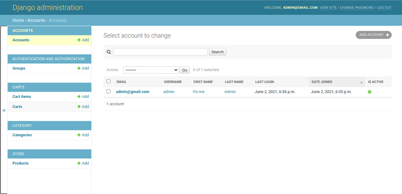 Trong file store/admin.py ta cũng thực hiện thêm app store để superuser quản lý: