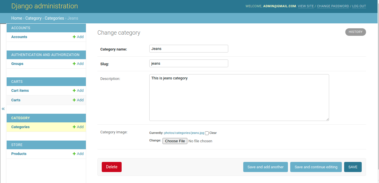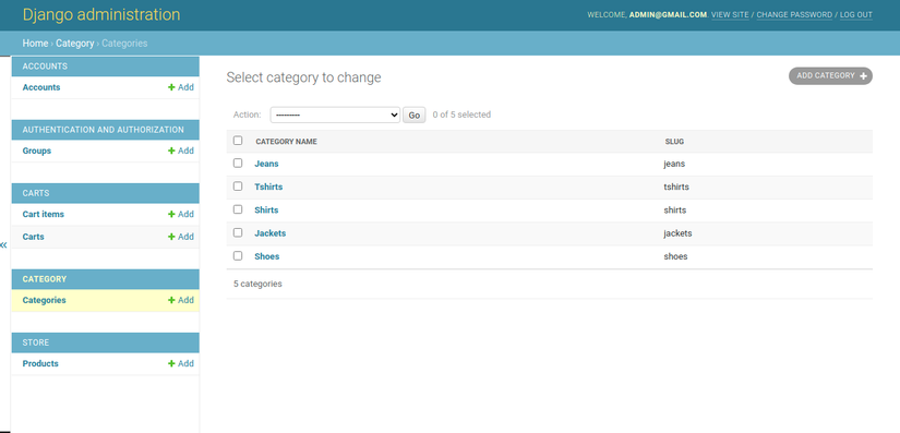 Chúng ta có giao diện cho phần quản lý category của superuser như sau: